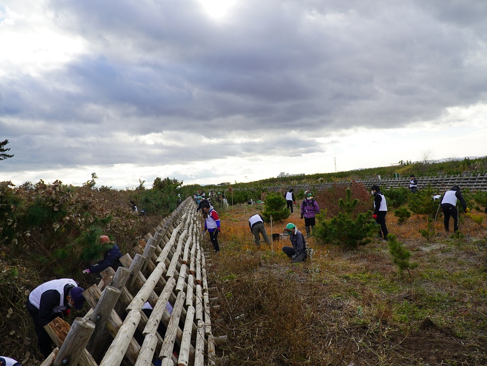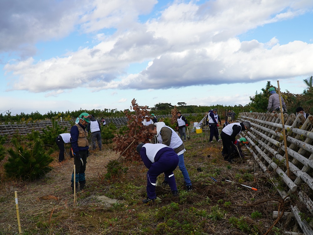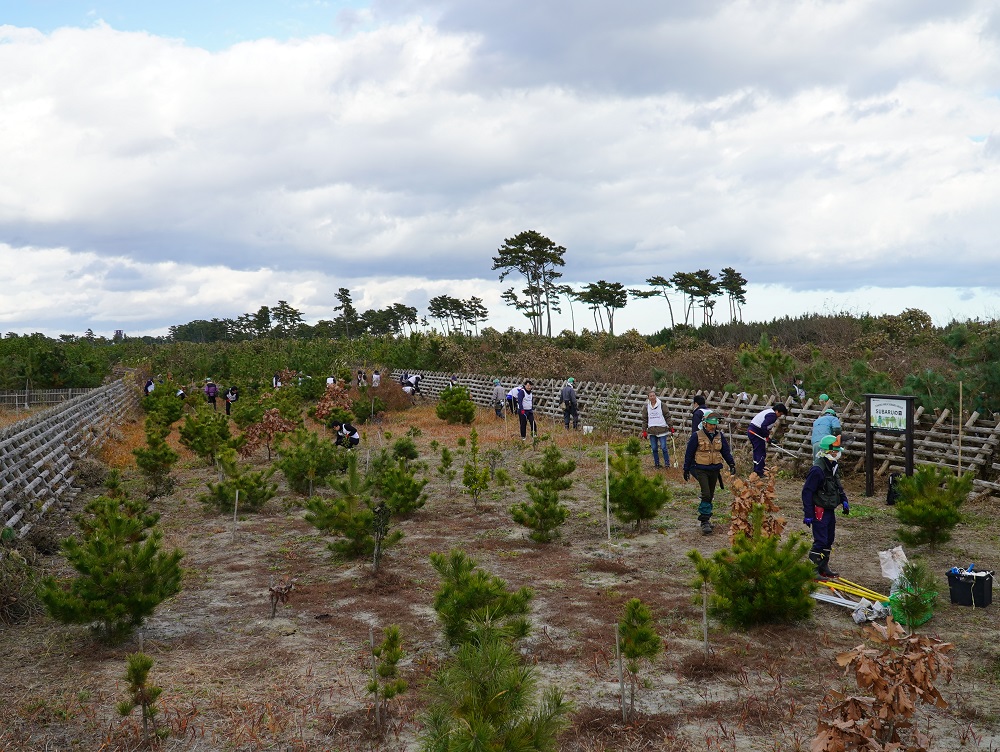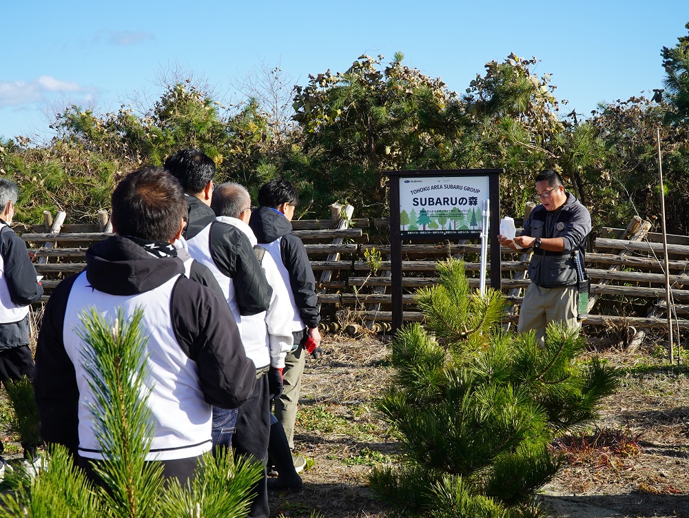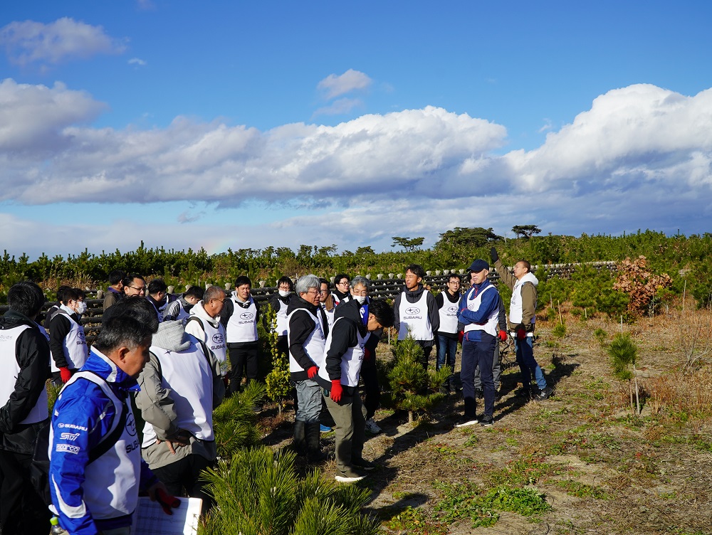 今年度3回目の「一つのいのちプロジェクト」“SUBARUの森”活動を11月28日におこないました。 東日本大震災で失われた防災林を再生させ、植樹されたクロマツ等の生長をサポートする活動です。