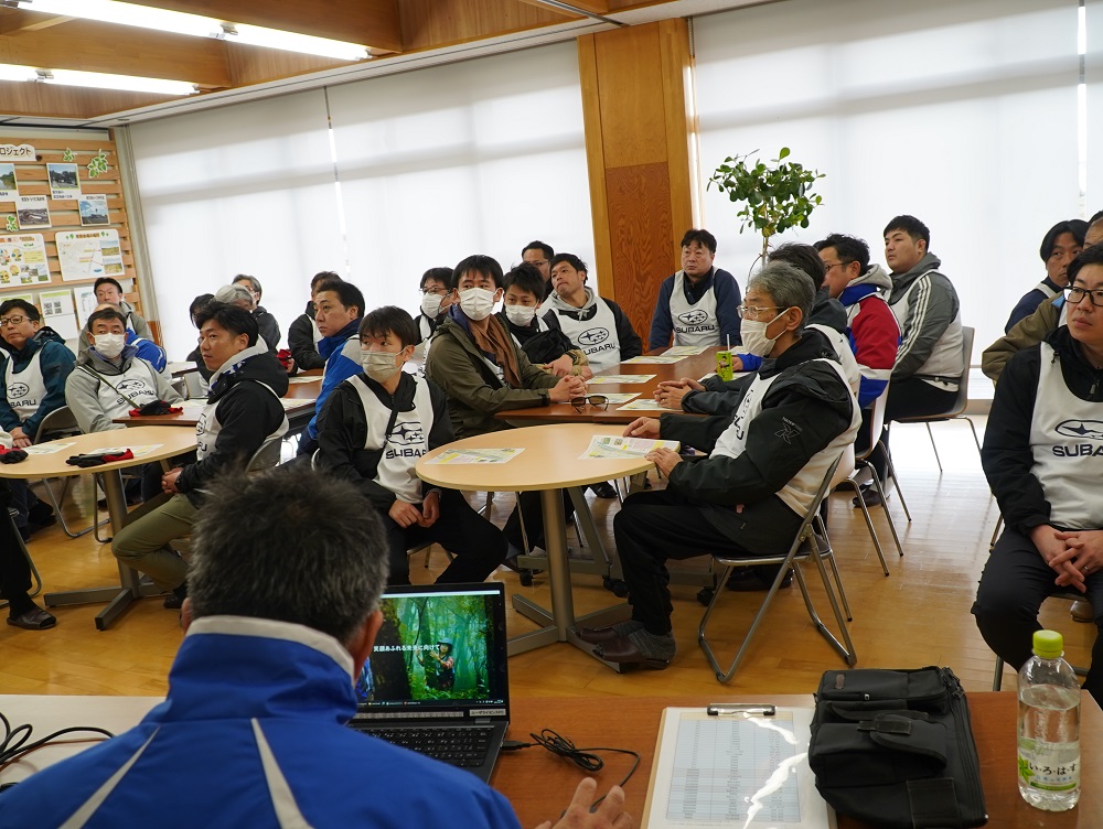 各県のスタッフ、36名が集まり海岸センターハウスにて、「一つのいのちプロジェクト」活動の目的やスバル東北のこれまでの取り組みについて講習、動画視聴をおこないました。