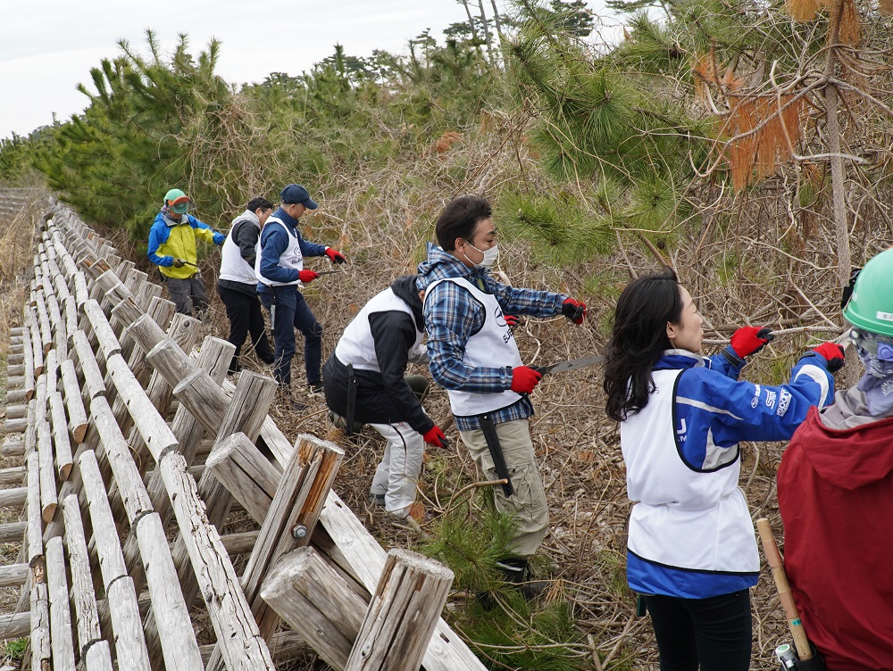 以前は他団体の契約となっていた箇所では手入れが行き届かず、くずの浸食を受け黒松がダメになってしまった区画を新たにスバル東北が契約。