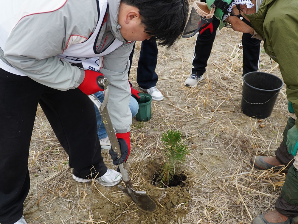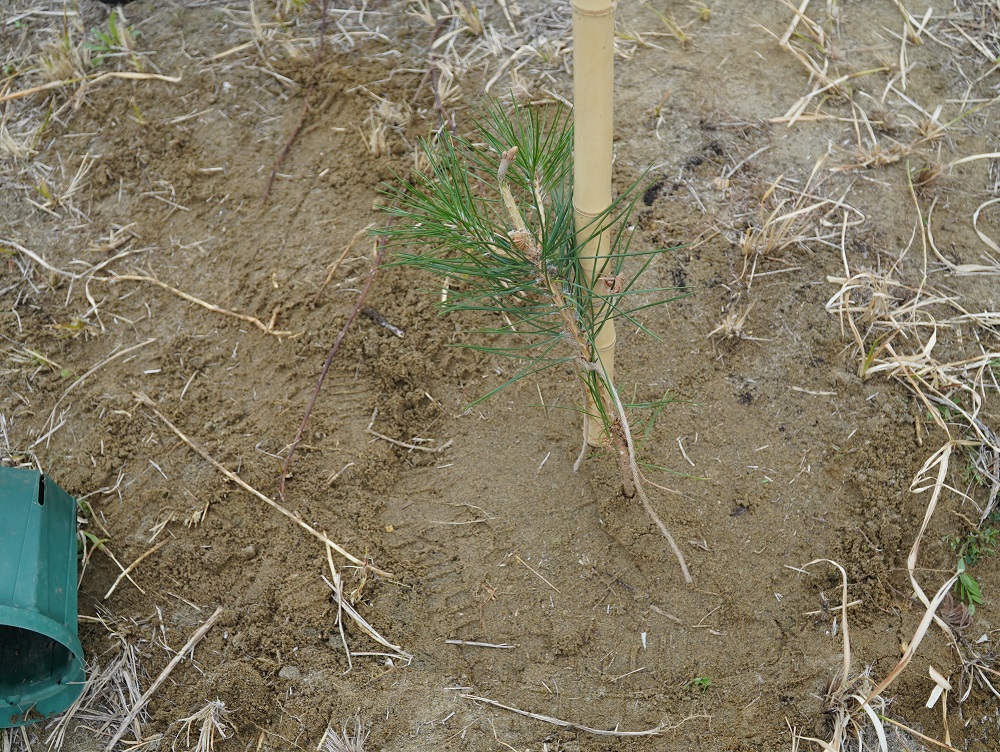 新入社員はこれからの成長を願い、黒松や広葉樹の植林をしました。