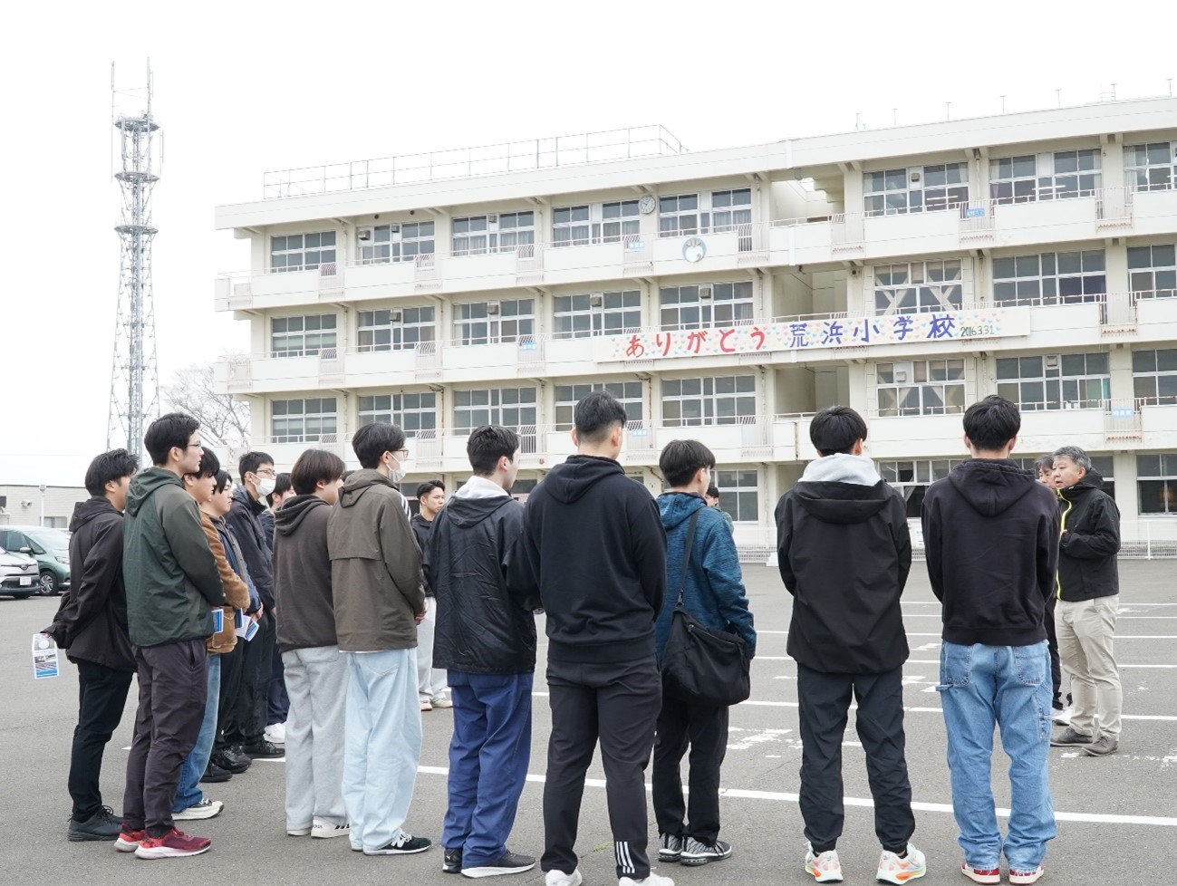 まずは2011年3月11日の東日本大震災にて被災した住民の方々が避難された、仙台市立荒浜小学校を見学。